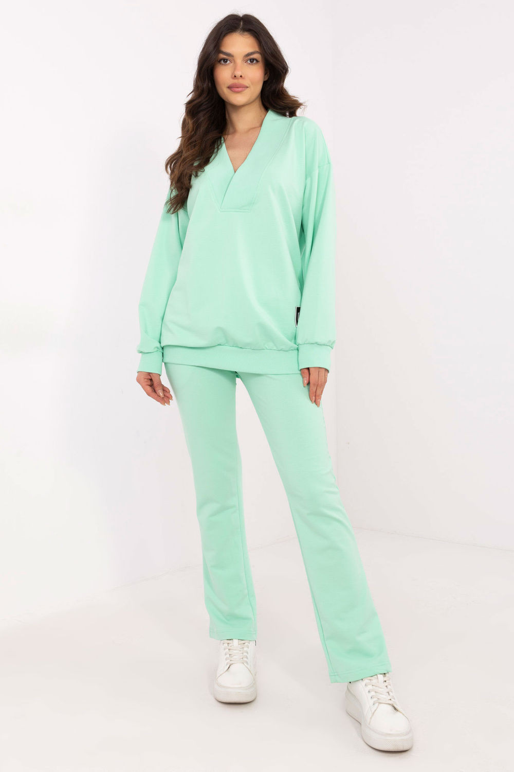 Tento dámský set je ideální volbou na každý den, kombinující pohodlí s minimalistickým stylem. Skládá se z mikiny s dlouhým rukávem a širokým výstřihem do tvaru srdce, který celku dodává ženský akcent. Jemné nášivky na mikině jsou módním detail, který přitahuje pozornost. Kalhoty s jednoduchým střihem, s vysokým pasem a širokou gumou v pase, zaručují perfektní přizpůsobení a pohodlí nošení. Vsuvné boční kapsy nejsou jen praktické, ale také zdůrazňují volný charakter setu. Celý set je vyroben z měkké směsi bavlny, elastanu a polyesteru, což zaručuje pohodlí a odolnost. Set se skvěle hodí na procházky, nákupy nebo relaxaci doma a jeho univerzální design umožňuje snadné kombinování s různými příležitostmi. Bavlna 72 % Elastan 6 % Polyester 22 % Velikost DélkaObvod beder Obvod prsou Obvod v pase universal74/103 cm100 cm128 cm58-110 cm