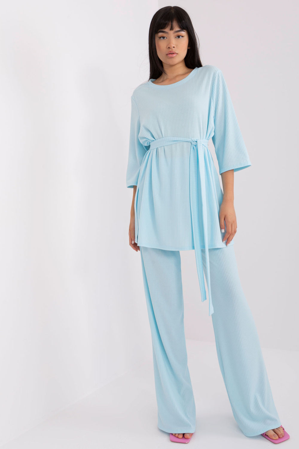 Elegantní a pohodlný dámský set z pruhované látky, ideální na každý den. Vyrobený z vysoce kvalitní bavlny s přídavkem elastanu, zajistí pohodlí a skvělé přizpůsobení postavě. Hladká textura a decentní pružení mu dodávají moderní, minimalistický charakter. Blůzka s 3/4 rukávem má klasický, univerzální střih, který skvěle ladí se širokými kalhotami s vysokým pasem. Další výhodou je pásek k zapínání, který pomáhá zdůraznit pas a dodat stylizaci elegantní akcent. Boční kapsy zvyšují funkčnost a pohodlí. Skvělá volba pro ženy, které ocení ležérní styl, volnost a módní detaily! Bavlna 65 % Elastan 35 % Velikost DélkaObvod prsou Obvod v pase S/M78/114 cm120 cm64 cm