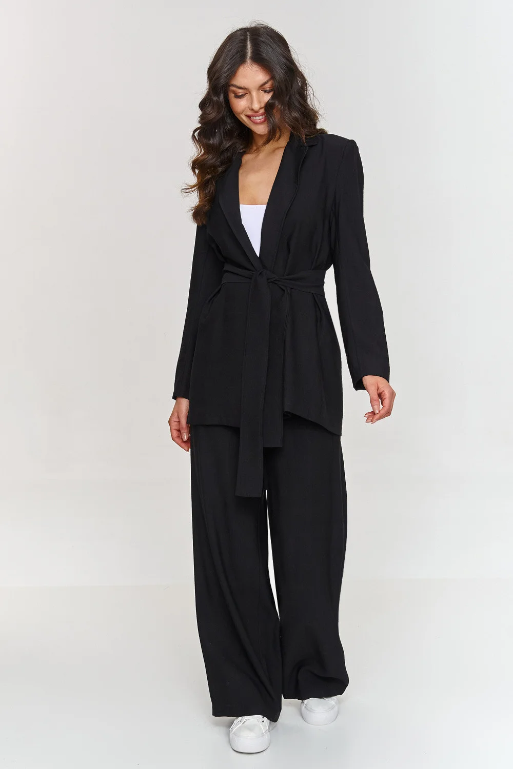 Tento dámský set byl navržen s ohledem na ženy, které hledají spojení stylu, pohodlí a moderní elegance. Sako s delším volným střihem dodává outfitu moderní charakter a pásek umožňuje přizpůsobení siluety a zdůraznění pasu. Nemá podšívku, což ho dělá lehčím a volnějším. Kalhoty s širokými nohavicemi zdůrazňují módní vzhled a elastický pas zajišťuje maximální pohodlí. Model je vyroben z lehkého, strukturálního materiálu, který zdůrazňuje jeho výjimečnost a třídu. Další výhodou je možnost nošení každého kusu samostatně, vytvářející různé a originální outfity. Díky jednoduchému, ale efektnímu designu je tento set skvělým řešením jak pro výlety s přáteli, tak i do kanceláře, na obchodní schůzky a další formální události, kde chcete vypadat profesionálně, aniž byste se vzdali pohodlí. Nylon 15 % Rayon 85 % Velikost DélkaObvod beder Obvod prsou Obvod v pase 3672/108 cm100 cm96 cm88 cm3874/108 cm104 cm100 cm92 cm4076/110 cm108 cm104 cm96 cm4278/110 cm112 cm108 cm100 cm