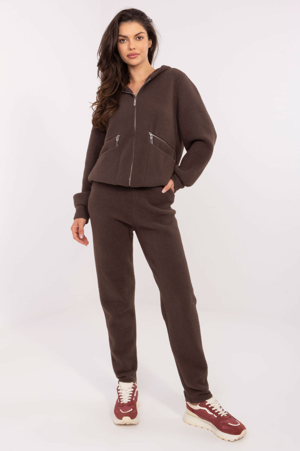 Tento volný dámský set je ideální nabídkou na chladné dny, stylový, pohodlný a příjemně objetí. Vyrobený z vysoce kvalitní směsi vlny, viskózy, angora a polyesteru, poskytuje vynikající tepelný komfort, měkkost a odolnost. Mikina s zipem má praktickou kapuci, dlouhý rukáv a velké nášivky kapsy na přední straně, které dodávají charakter a funkčnost. Její jednoduchý, hladký vzor se skvěle kombinuje s různými doplňky a osvědčí se jak doma, tak při procházce. Kalhoty s dlouhými, zužujícími se nohavicemi mají vysoký pas a šňůrku v pase, díky čemuž se skvěle přizpůsobují postavě. Boční kapsy přidávají praktičnost bez narušení minimalistické formy. Tento set je ideální pro každodenní aktivity, spojuje volnost pohybu, teplo a stylový vzhled v jednom outfitu. Angora 15.3 % Polyester 23.5 % Viskóza 22.8 % vlna 38.4 % Velikost DélkaObvod beder Obvod prsou Obvod v pase universal66/108 cm112/98 cm112 cm68-120 cm