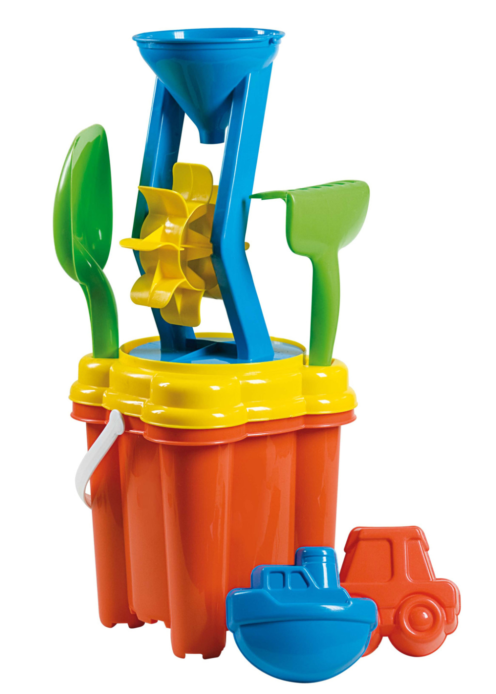 Skvělá sada hraček na písek, najdeš v ní vše, co na písku budeš potřebovat. Obsahuje: Kyblík, hrabičky, lopatičku, bábovičky a mlýnek. Výška kyblíku cca 20 cm.