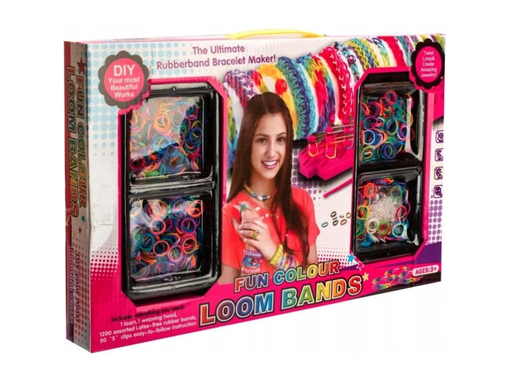 Pletení gumiček rozvíjí kreativitu, jemnou motoriku, učí trpělivosti a soustředění. Je to skvělý způsob, jak trávit společný čas s rodinou. Barevné gumičky jsou umístěny ve velkém třípatrovém praktickém kufříku s přihrádkami oddělujícími barevné gumičky a doplňky v podobě přívěsků zvířátek, hvězdiček a kytiček.