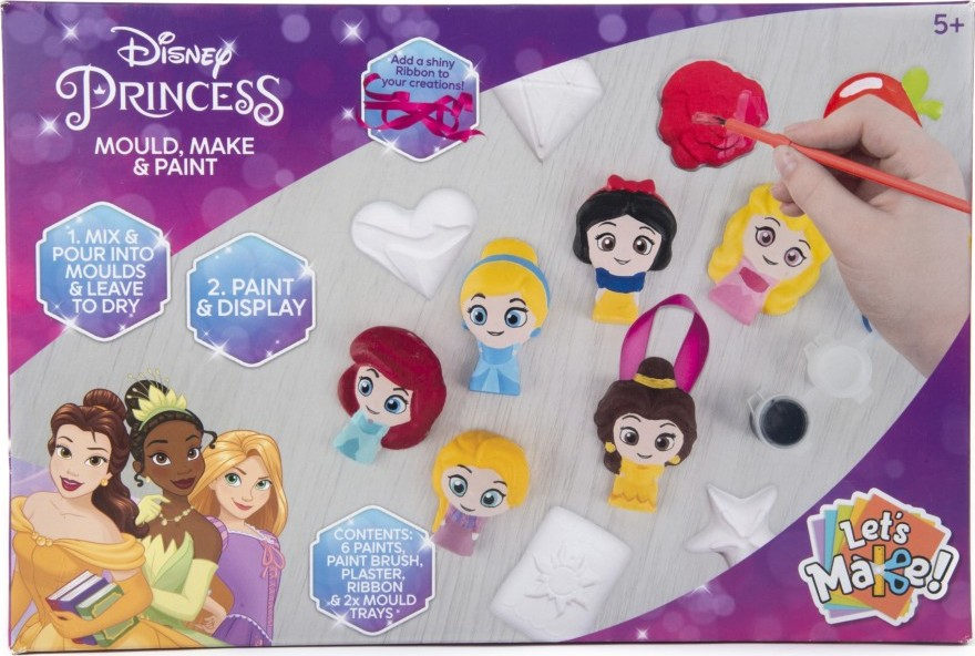 Sada na výrobu sádrových figurek Disney Princezny – sada obsahuje vše, co potřebují k výrobě 8 detailních figurek Disney Princezny, včetně sádry, formiček, 5 barev barev a štětce. Děti mohou popustit uzdu své kreativitě tím, že naplní formičky sádrou a poté figurky vybarví zářivými barvami. Tato zábavná a vzdělávací aktivita stimuluje představivost, podporuje jemné motorické dovednosti.