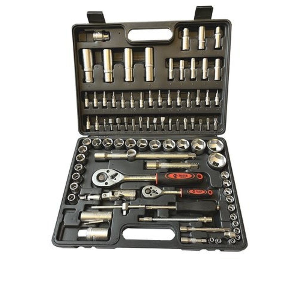 Profesionální sada nářadí v praktickém kufříku, ideální pro dílnu, garáž i domácí použití. Obsahuje 94 dílů včetně ráčen, hlavic, nástavců, bitů a prodlužovacích nástavců. Vše je přehledně uspořádáno v pevném plastovém kufru s madlem pro snadné přenášení.