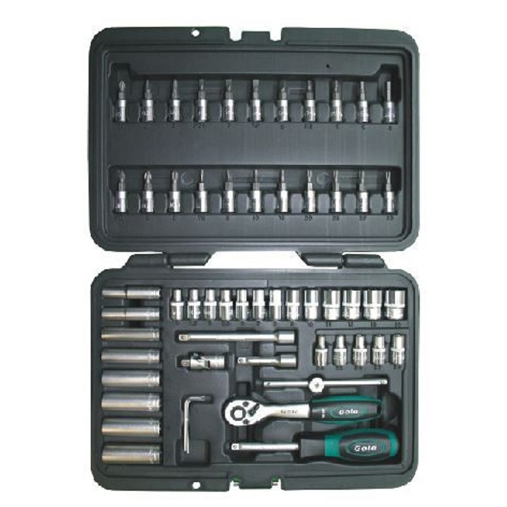 Sada nástrčných hlavic 1/4" 57 dílů GOLA 140057 Sada nástrčných hlavic 1/4" 57 dílů GOLA 140057 je komplexní sada nářadí, která je ideální pro širokou škálu údržbářských a opravárenských prací. Obsah sady: Sada obsahuje 57 dílů, včetně nástrčných hlavic, bitů, ráčny a dalšího příslušenství. Nástrčné hlavice různých velikostí pro různé typy šroubů a matic. Ráčna 1/4" pro snadné a rychlé utahování a povolování. Prodloužení, kloub a další příslušenství pro lepší přístup k obtížně dostupným místům. Bity různých typů (ploché, křížové, imbusové, torx) pro univerzální použití. Klíčové vlastnosti: Kvalitní materiál: Nářadí je vyrobeno z chrom-vanadiové oceli (CrV), což zajišťuje vysokou odolnost a dlouhou životnost. Praktický kufřík: Sada je uložena v pevném kufříku, který usnadňuje přenášení a skladování. Univerzální použití: Sada je vhodná pro autoservis, dílnu, domácí použití a další opravárenské práce. Rozpis nářadí v sadě 57 ks: počet ks položka velikost mm 13 hlavice 1/4" 4; 4,5; 5; 5,5; 6; 7; 8; 9; 10; 11; 12; 13; 14 8 prodloužené hlavice 6, 7, 8, 9, 10, 11, 12, 13 5 hlavice TORX E E4, E5, E6, E7, E8 22 zástrčné hlavice PH1, PH2, PH3, PZ1, PZ2, PZ3, LP4, LP5,5, LP6, TX8, TX9, TX10, TX15, TX20, TX25, TX27, TX30 1 ráčna 145 2 nástavec 125 a 250 1 vratidlo 250 1 kardan 73 1 nástavec s rukojetí 150 3 imbusy 1,5; 2; 2,5