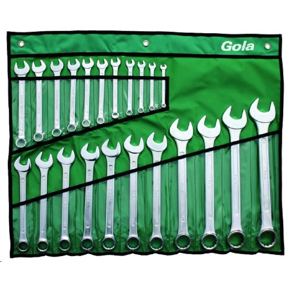 Sada OP klíčů DIN 3113 CrV 7 - 32 mm Gola 600022 Sada očkoplochých klíčů Gola 600022 je kvalitní sada nářadí, která se hodí pro profesionální i domácí použití. Vlastnosti a použití: Typ: Očkoploché klíče (OP klíče) Norma: DIN 3113 Materiál: Chrom-vanadiová ocel (CrV) Rozsah velikostí: 7 - 32 mm Použití: Sada je ideální pro utahování a povolování šroubů a matic v různých aplikacích. Vhodné pro autoservisy, dílny, montážní práce a domácí kutily. Další vlastnosti: Klíče jsou vyrobeny z kvalitního materiálu, který zajišťuje vysokou odolnost a dlouhou životnost. Proti korozi jsou klíče chráněny povrchovou úpravou nikl/chrom. Sada je dodávána v textilním obalu. Obsah sady: Sada obsahuje klíče o velikostech: 7, 8, 9, 10, 11, 12, 13, 14, 15, 16, 17, 18, 19, 20, 21, 22, 23, 24, 27, 28, 30, 32 mm.