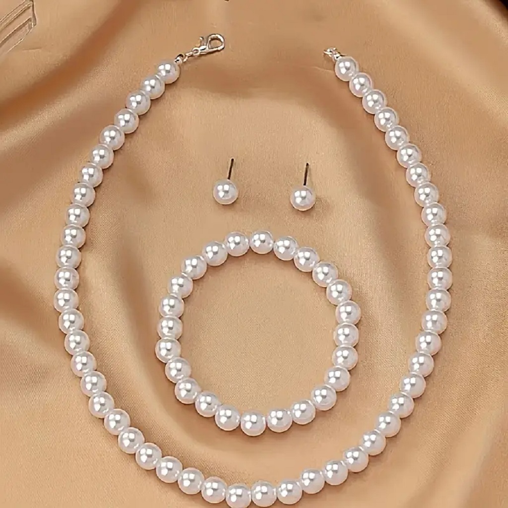 Náhrdelník, náramek a náušnice v imitaci bílých perel dodají vašemu outfitu šmrnc a eleganci.