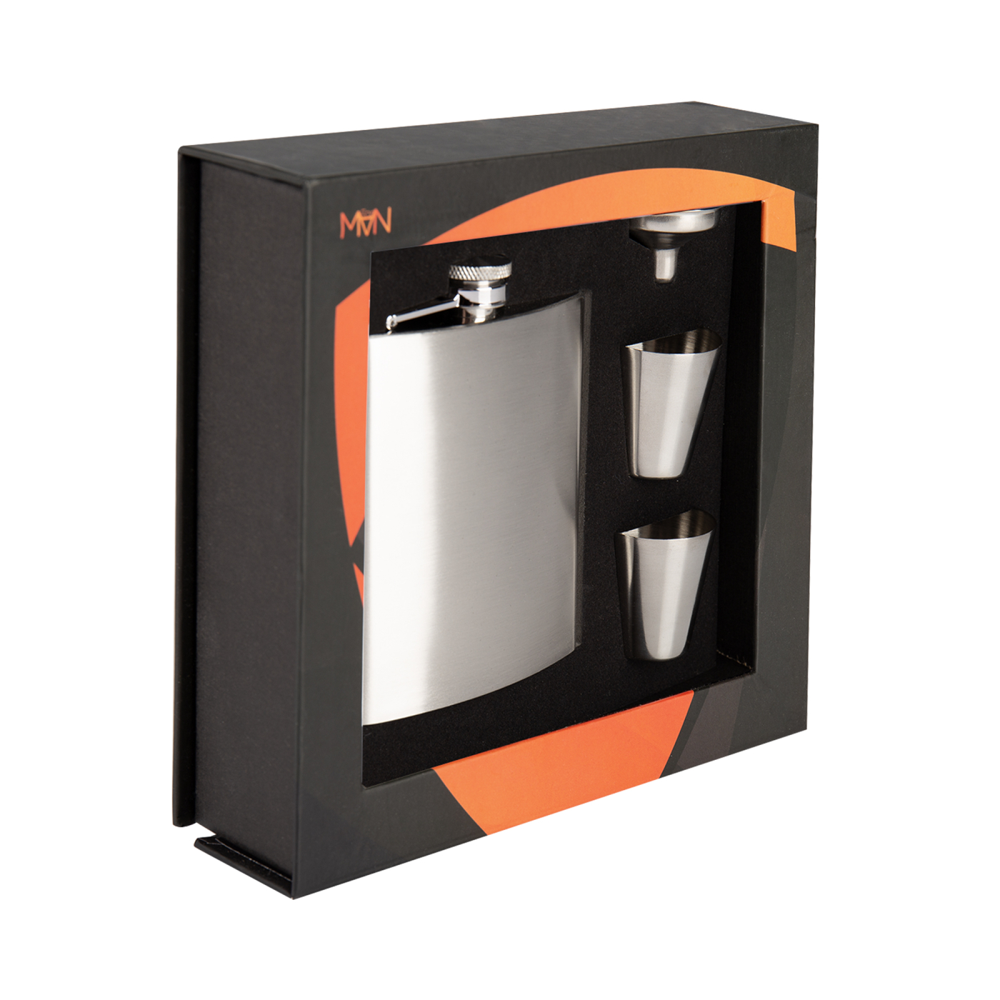 Sada Placatka For Man z kolekce Mužská záležitost od Albi. Sada obsahuje: placatku, 2 panáky a nalévátko. Materiál: nerez Objem placatky: 200 ml Objem panáků: 2× 20 ml Sada není vhodná do mikrovlnné trouby a myčky nádobí.