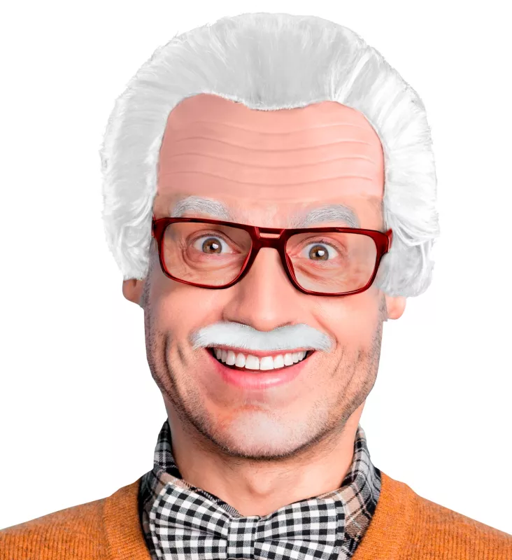Přeměňte se během okamžiku v postaršího gentlemana s touto sadou! Obsahuje pleš s bílými vlasy, kulaté brýle a ikonický knír, díky čemuž si snadno vytvoříte realistický vzhled starého muže. Skvělý doplněk na karnevaly, tematické večírky i divadelní představení.r