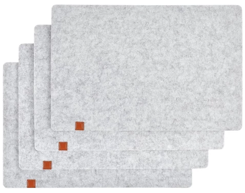 4-dílná sada světle šedých filcových prostírání dodá stolu moderní styl. Zároveň chrání povrch stolu před poškrábáním a skvrnami.