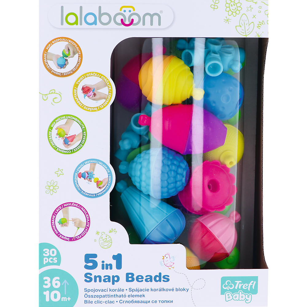 Korálkové bloky se dají navzájem spojovat tak, že se zacvakne jeden blok do druhého. Spojovací korálkové bloky lze rozkládat a skládat. Lze je libovolně kombinovat, a tak vytvářet různorodé barevné konstrukce. Jediným ohraničením je vlastní představivost! Vhodné pro děti 10–36 měsíců. Sada obsahuje: 30 dílů určených pro skládání
