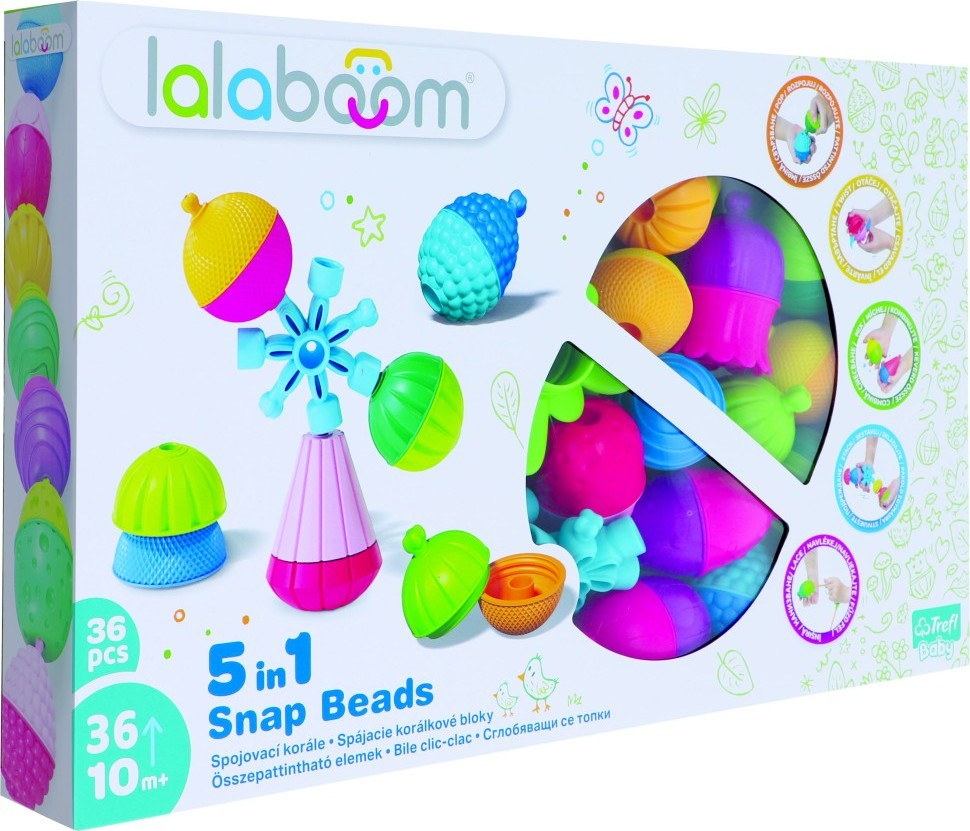Korálkové bloky se dají navzájem spojovat tak, že se zacvakne jeden blok do druhého. Spojovací korálkové bloky lze rozkládat a skládat. Lze je libovolně kombinovat, a tak vytvářet různorodé barevné konstrukce. Jediným ohraničením je vlastní představivost! Vhodné pro děti 10–36 měsíců. Sada obsahuje: 30 dílů určených pro skládání, 2 okvětní lístky, 2 spojky, 2 provázky pro navlékání.