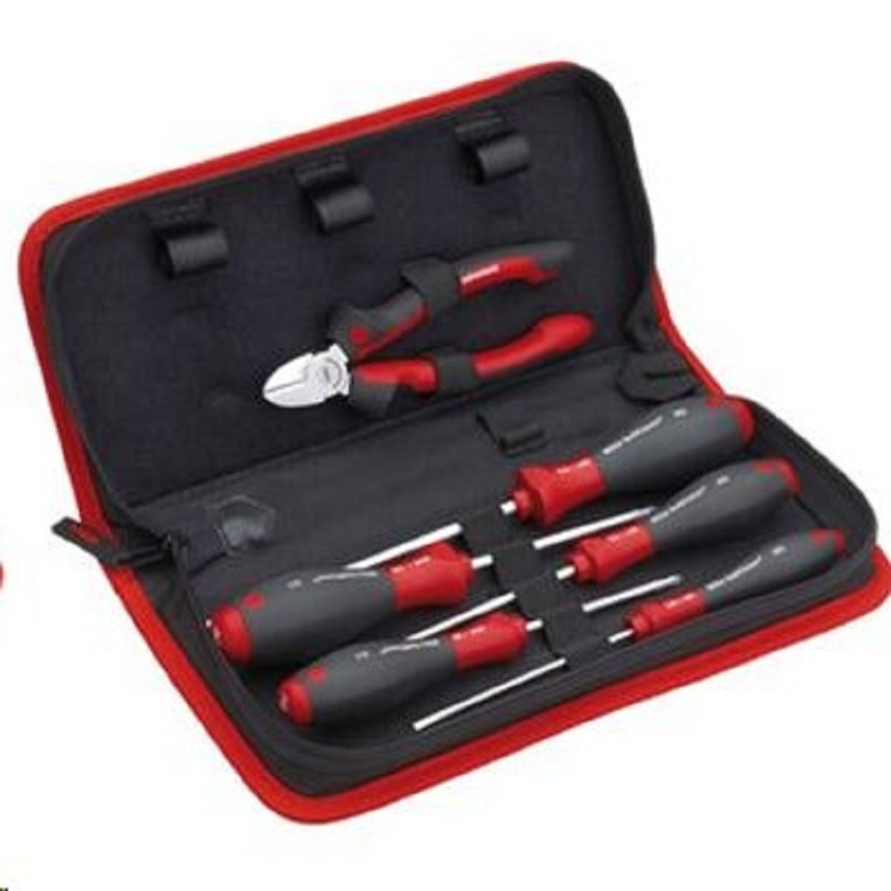 Wiha 33971 - Sada šroubováků 6-dílná č 7, dárkové baleníPH + plochý + kombinované kleště Charakteristika : - Sada nástrojů č 7+13, šestidílná - SoftFinish® sada šroubováků, pětidílná - Oválné břity. - Kleště na štípání drátu Professional. - Normy: DIN ISO 5749. Tvar hlavy: - Půlkruhový, švédský tvar. Provedení: - málo podléhající opotřebení, vložený kloub s vysoce odolným nýtováním. - Čisté stříhání šetřící síly pomocí speciálně frézovaného přesného břitu. - Břity s dlouhou životností díky dodatečnému indukčnímu zakalení na cca 60 HRC. Materiál: - Speciální zušlechtěná nástrojová ocel. Použití: - Pro měkký i tvrdý drát.