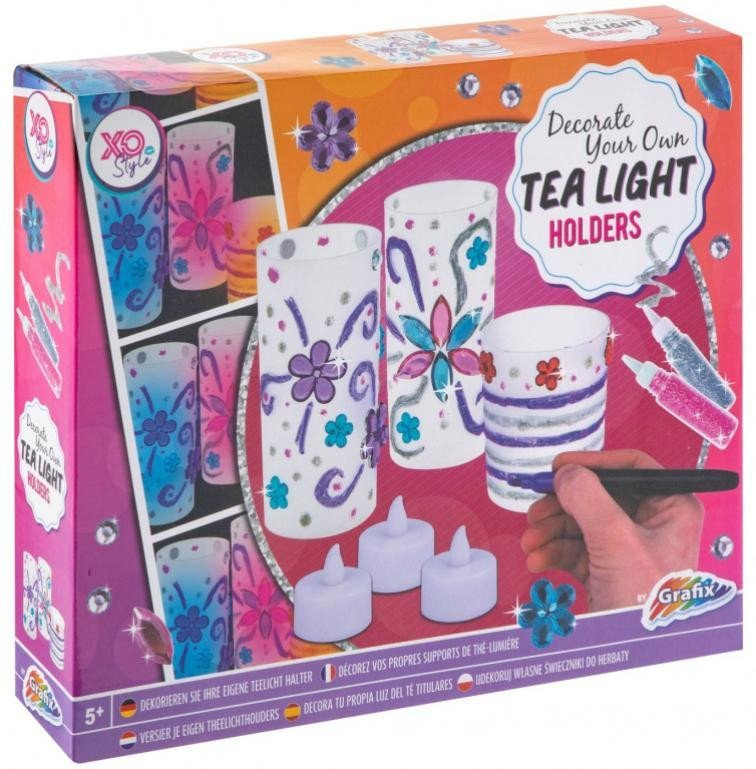 Sada obsahuje: 3x stojánek na svíčky, 2x barevné fixy, samolepky, 2 x třpytivé lepidlo, 3x el. svíčky ( vč.LR41 baterie). Velikost krabice: 25 x 30 x 6 cm