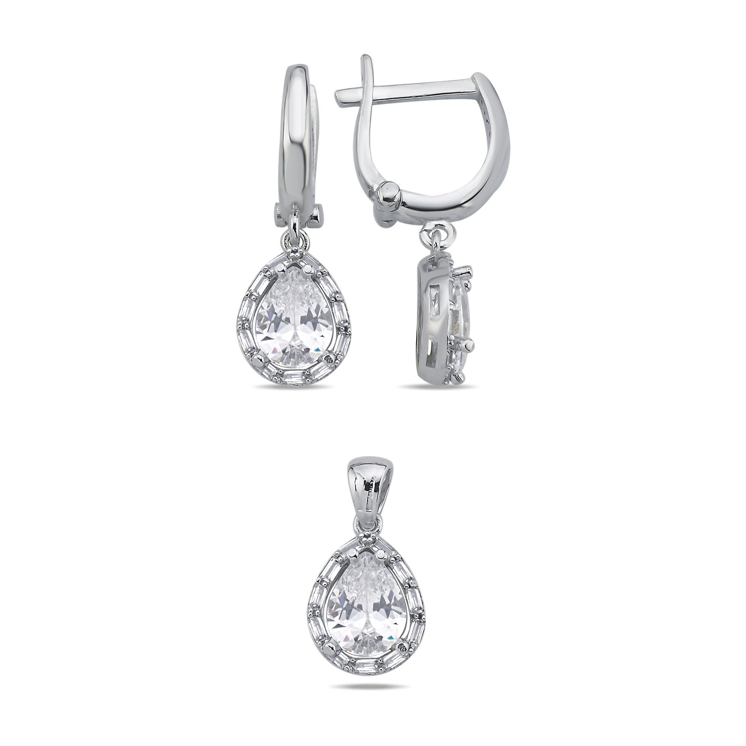 - Dominantou přívěsku a náušnic je zářivý zirkon ve tvaru kapky.