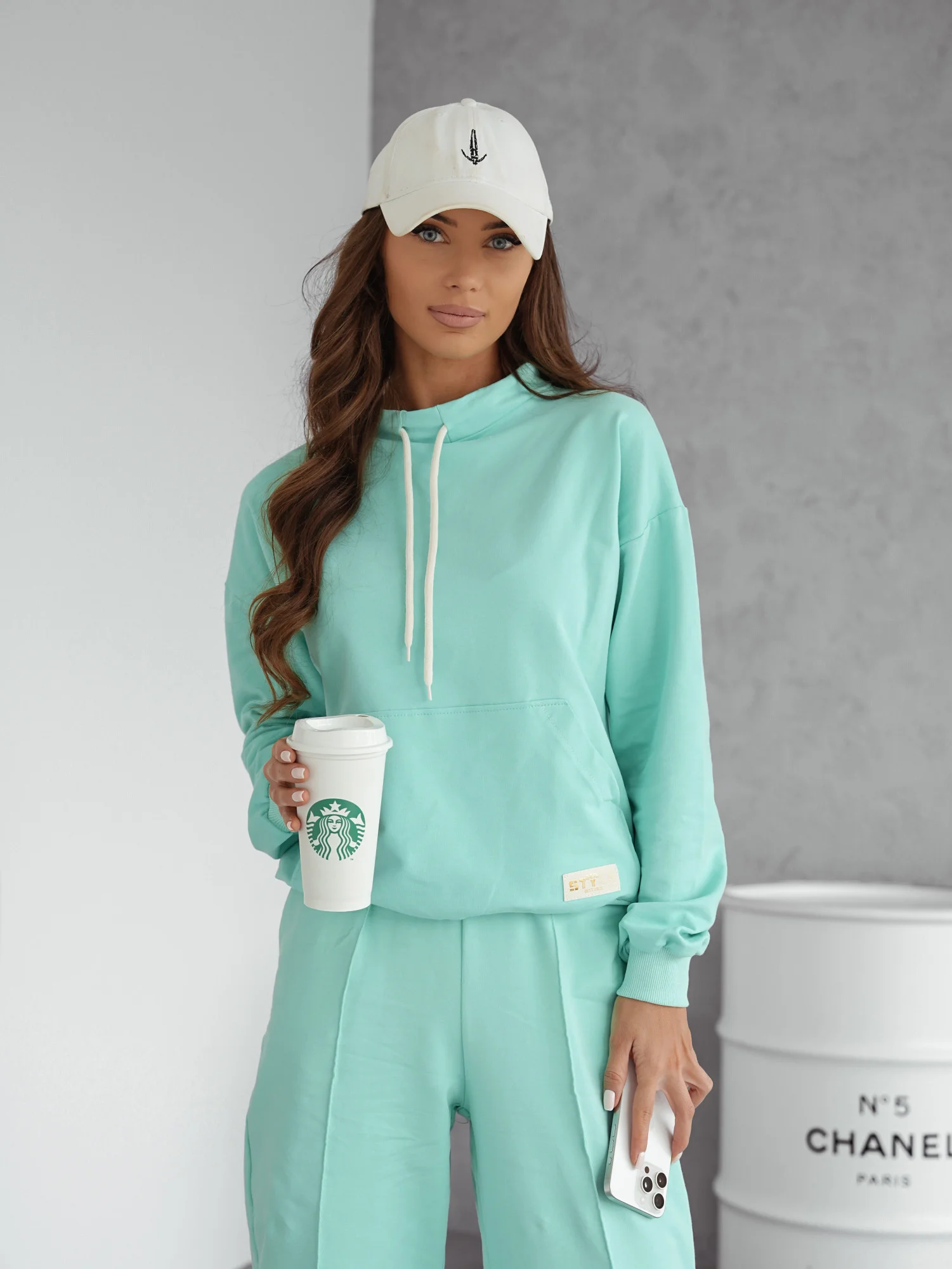?Vneste do svého šatníku závan čerstvého vzduchu s naší dámskou teplákovou soupravou v mátově zeleném odstínu . Tato souprava kombinuje nadčasový styl s každodenním pohodlím a je ideální pro každou příležitost?Klasická tepláková souprava přes hlavu s volným stojáčkem nabízí volnost pohybu a elegantní vzhled a díky svému univerzálnímu střihu se skvěle hodí k teplákům i dalším oděvům.?Kalhoty s vysokým pasem byly navrženy s ohledem na pohodlí a funkčnost, s praktickými bočními kapsami a širokým elastickým pasem pro dokonalé přizpůsobení. Prošití podél nohavic opticky zeštíhluje siluetu a dodává celkovému vzhledu lehkost?Tento komplet je vyroben z měkké a pružné bavlny s přídavkem elastanu, což zaručuje celodenní pohodlí, a materiál se dokonale přizpůsobí siluetě, aniž by omezoval v pohybu.? 95% bavlna 5 % elastanu? Ať už plánujete aktivní den ve městě, odpočinek doma nebo setkání s přáteli, tato souprava je ideální volbou. Díky klasickému střihu a módní barvě se budete cítit stylově a pohodlně v každé situaci.sŠířka poprsí halenky - 53 cm (rozšiřuje se na 60 cm)Celková délka halenky - 55 cmŠířka kalhot v pase - 32 cm (rozšiřuje se na 47 cm)Šířka boků kalhot - 49 cm (rozšiřuje se na 56 cm)Vnější délka nohavic - 102 cmDélka nohavice od rozkroku - 76 cmDélka v pase - 32 cmMŠířka poprsí halenky - 55 cm (rozšiřuje se na 63 cm)Celková délka halenky - 55 cmŠířka kalhot v pase - 32 cm (rozšiřuje se na 47 cm)Šířka boků kalhot - 54 cm (rozšiřuje se na 60 cm)Vnější délka nohavic - 102 cmDélka nohavice od rozkroku - 75 cmDélka v pase - 33 cmlŠířka poprsí halenky - 59 cm (rozšiřuje se na 66 cm)Celková délka halenky - 59 cmŠířka kalhot v pase - 35 cm (rozšiřuje se na 51 cm)Šířka boků kalhot - 56 cm (rozšiřuje se na 66 cm)Vnější délka nohavic - 102 cmDélka nohavice od rozkroku - 76 cmDélka v pase - 35 cmxLŠířka halenky přes prsa - 62 cm (rozšiřuje se na 66 cm)Celková délka halenky - 59 cmŠířka kalhot v pase - 35 cm (rozšiřuje se na 55 cm)Šířka boků kalhot - 59 cm (rozšiřuje se na 68 cm)Vnější délka nohavic - 103 cmDélka nohavice od rozkroku - 77 cmDélka spodního dílu - 34 cmSložení látky: bavlna 95 %, polyester 18 %, elastan 5 %