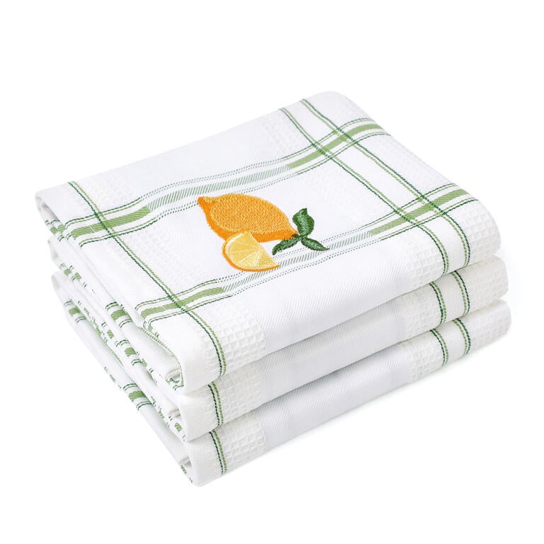 Kvalitní vaflové utěrky jsou ideální volbou do vaší kuchyně. Tyto české utěrky s výšivkou žlutého citronu vynikají nejen svou savostí, ale i trvanlivostí a schopností udržet si své barvy. Jsou vybaveny praktickým poutkem, takže je můžete snadno pověsit kamkoli v kuchyni.