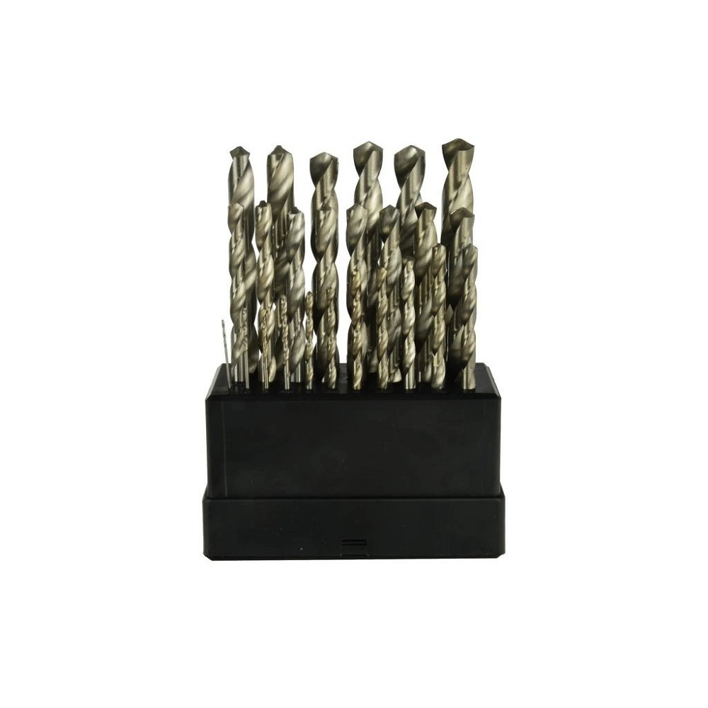 Sada vrtáků do kovu z HSS (rychlořezné oceli). Sada obsahuje 25 HSS vrtáků ve velikostech od 1 do 13 mm. Vrtáky s válcovou rukojetí. Sada je určena pro vrtání do oceli, kovu a dalších podobných materiálů. Vlastnosti produktu: Vyrobeno z rychlořezné oceli HSS Hrot broušený ve 2 stupních pod úhlem 135° 25 vrtáků ve velikostech od 1 do 13 mm Válcová rukojeť Technické specifikace: Materiál: HSS rychlořezná ocel Počet prvků sady: 25 Velikosti vrtáků [mm]: 1.0, 1.5, 2.0, 2.5, 3.0, 3.5, 4.0, 4.5, 5.0, 5.5, 6.0, 6.5, 7.0, 7.5, 8.0, 8.5, 9.0, 9.5, 10.0, 10.5, 11.0, 11.5, 12.0, 12.5, 13.0 mm