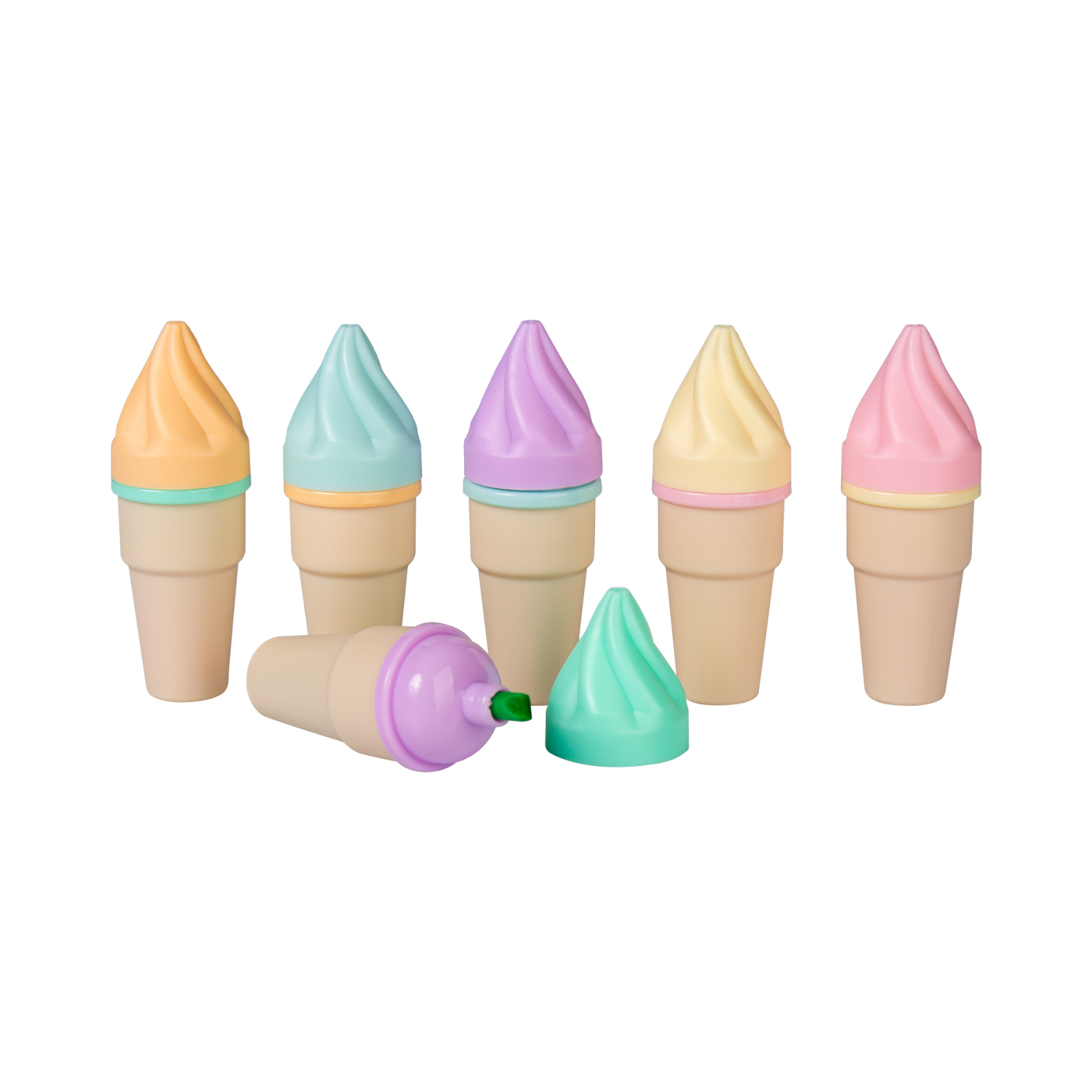 Sada obsahuje 6 kusů roztomilých zvýrazňovačů (žlutý, růžový, zelený, fialový, modrý a oranžový) ve tvaru zmrzlin.