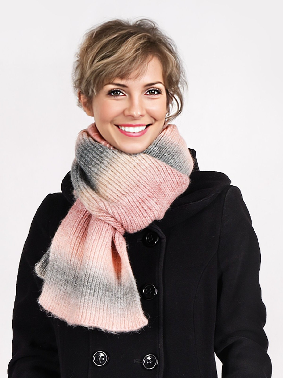 Dámská dlouhá šála - příjemný, měkký úplet - odstíny barev: růžová-šedá-béžová Složení: 50 % akryl, 29 % polyester, 9 % polyamid, 4 % vlna
