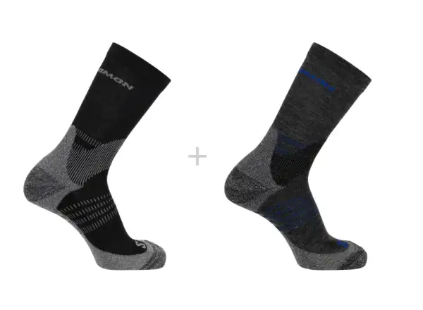 Ponožky Salomon X Ultra Access Crew ve výhodném dvoupárovém balení jsou navrženy tak, aby poskytly maximální pohodlí, funkčnost a odolnost při turistice, trailovém běhu i běžném každodenním nošení. Díky středně vysokému střihu (crew) chrání kotníky i spodní část lýtek, což je ideální při nošení trekových bot nebo delším pohybu v přírodě. Použitá směs materiálů kombinuje výhody merino vlny, polypropylenu, akrylu a polyamidu. Merino vlna se postará o přirozenou termoregulaci, polypropylen zajišťuje rychlý odvod vlhkosti a syntetická vlákna přidávají pružnost a odolnost. Výsledkem jsou ponožky, které udrží nohy v suchu, teple a pohodlí i při náročném výkonu. Pro zajištění maximálního komfortu jsou ponožky vybaveny froté výstelkou na chodidle, která tlumí nárazy a zvyšuje měkkost při došlapu. Zesílená pata a špička zajišťují delší životnost a ochranu proti prodření. Ploché švy ve špičce zabraňují nepříjemnému tření a tvorbě puchýřů, zatímco ventilační zóny zajišťují prodyšnost a lepší proudění vzduchu.