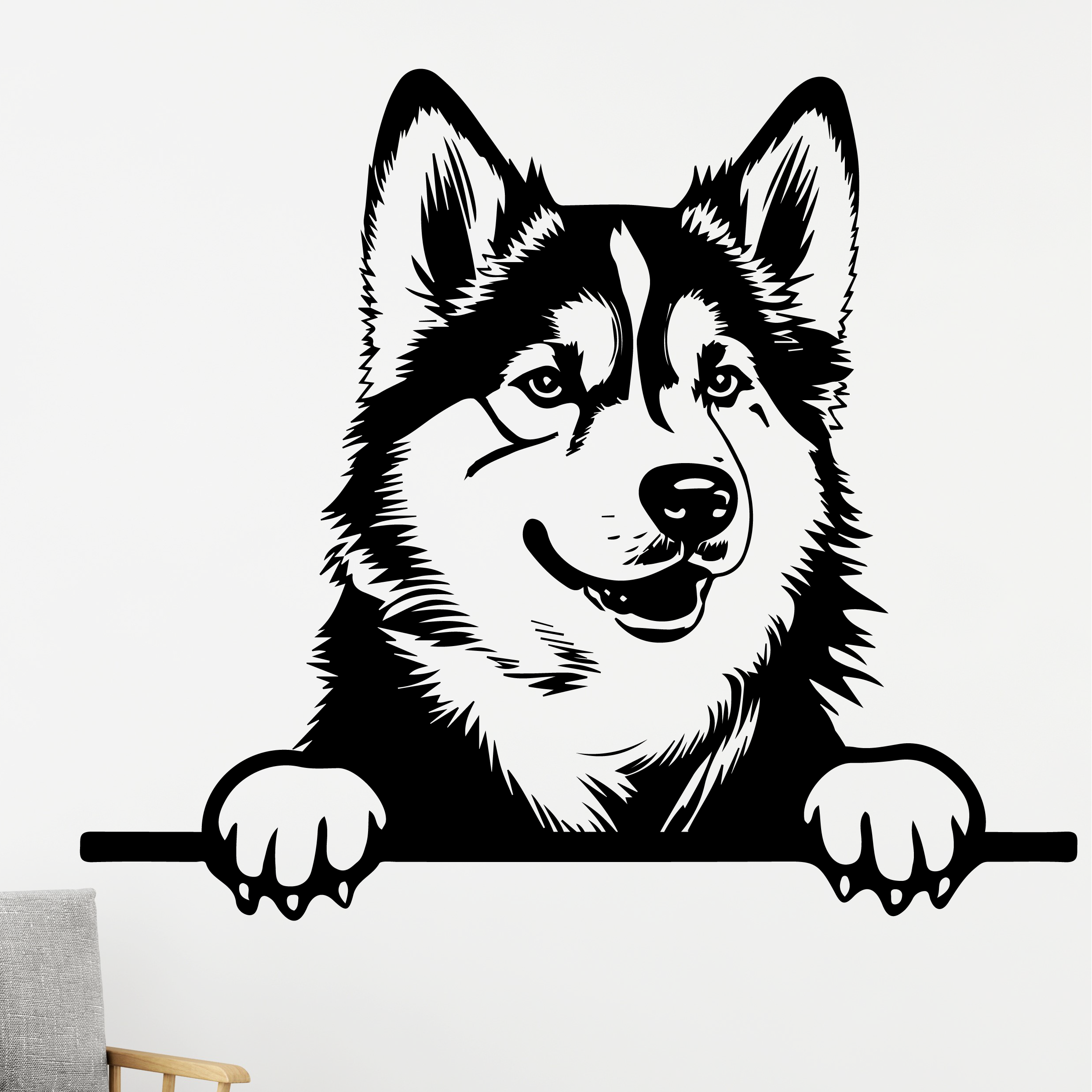 Tato originální samolepící dekorace na zeď Aljašský malamut se skvěle hodí třeba do obývacího nebo dětského pokoje, ale každý milovník těchto domácích mazlíčků, ji bude obdivovat v kterékoliv místnosti, kterou si zvolí. Psi patří bez pochyby k nejoblíbenějším domácím mazlíčkům, ale nemusíte být majitelem tohoto chlupatého stvoření, aby Vás tato dekorace uchvátila.