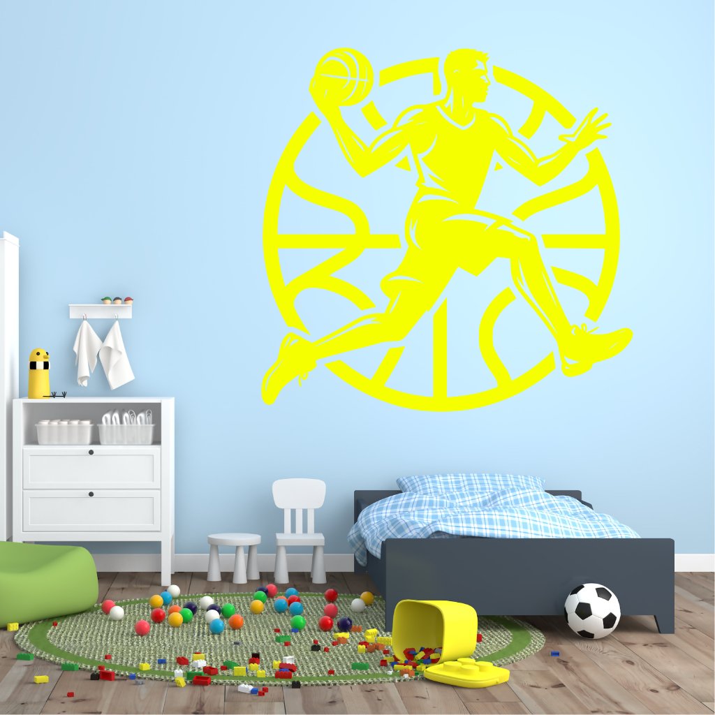 Domů Nábytek Bytové doplňky a dekorace Bytové dekorace Samolepky na zeď Samolepka Basketbalista v akci Barva: žlutá, Velikost: 80 x 78 cm