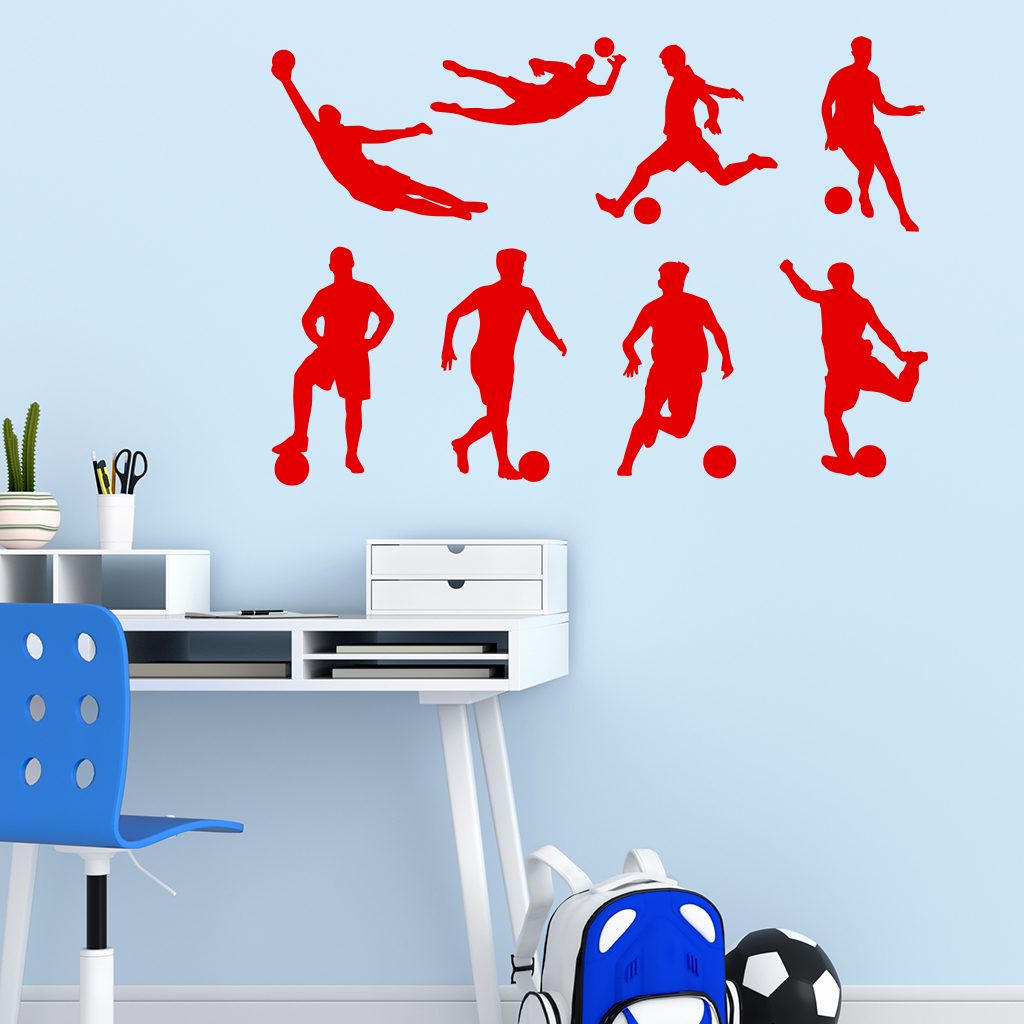 Tato originální samolepící dekorace na zeď Fotbalisti je ideálním doplňkem pro malé i velké fanoušky fotbalu. Pokud patříte k milovníkům „bílého baletu“, pak by ve Vašem pokoji neměla chybět tyto siluety fotbalistů .Tyto siluety můžete nastříhat a rozmístit libovolně do prostoru dle vaších představ .Nechte vaše zdi zdobit dětský pokoj, obývací pokoj, pracovnu nebo fotbalový klub.
