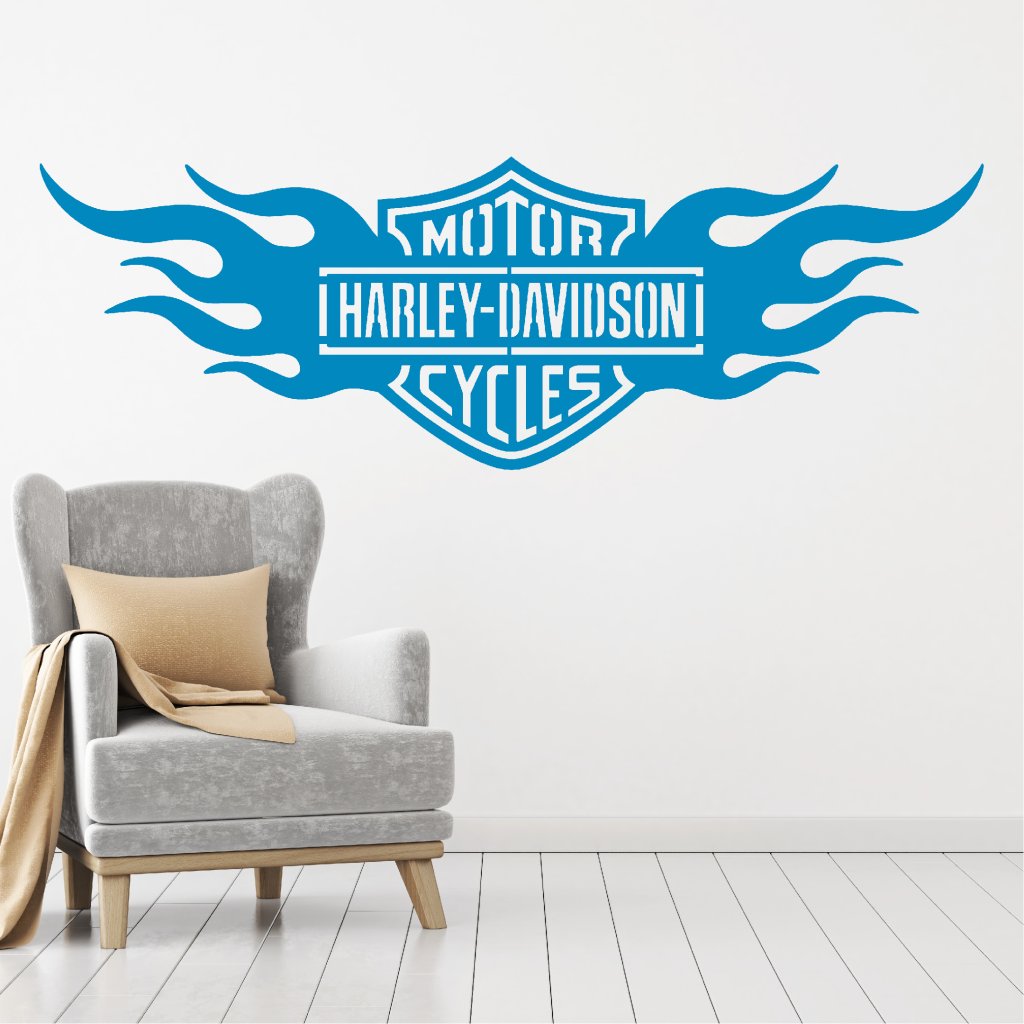 Domů Nábytek Bytové doplňky a dekorace Bytové dekorace Samolepky na zeď Samolepka Harley Davidson oheň Barva: modrá, Velikost: 80 x 26 cm