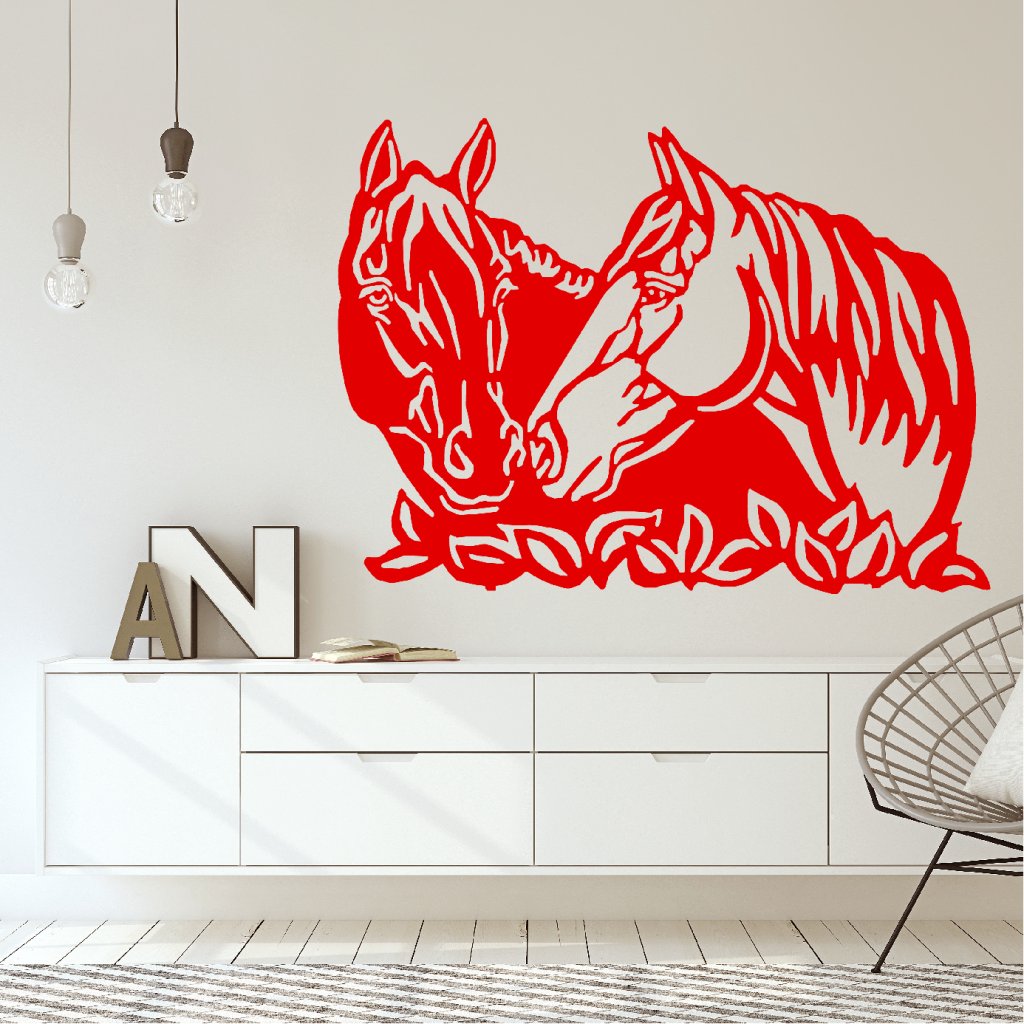 Domů Nábytek Bytové doplňky a dekorace Bytové dekorace Samolepky na zeď Samolepka Koňské hlavy Barva: červená, Velikost: 80 x 58 cm