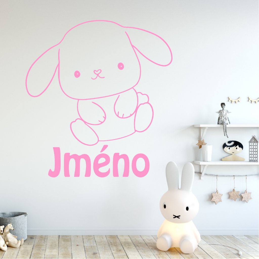 Samolepka Králíček se jménem Barva: růžová, Velikost: 100 x 86 cm