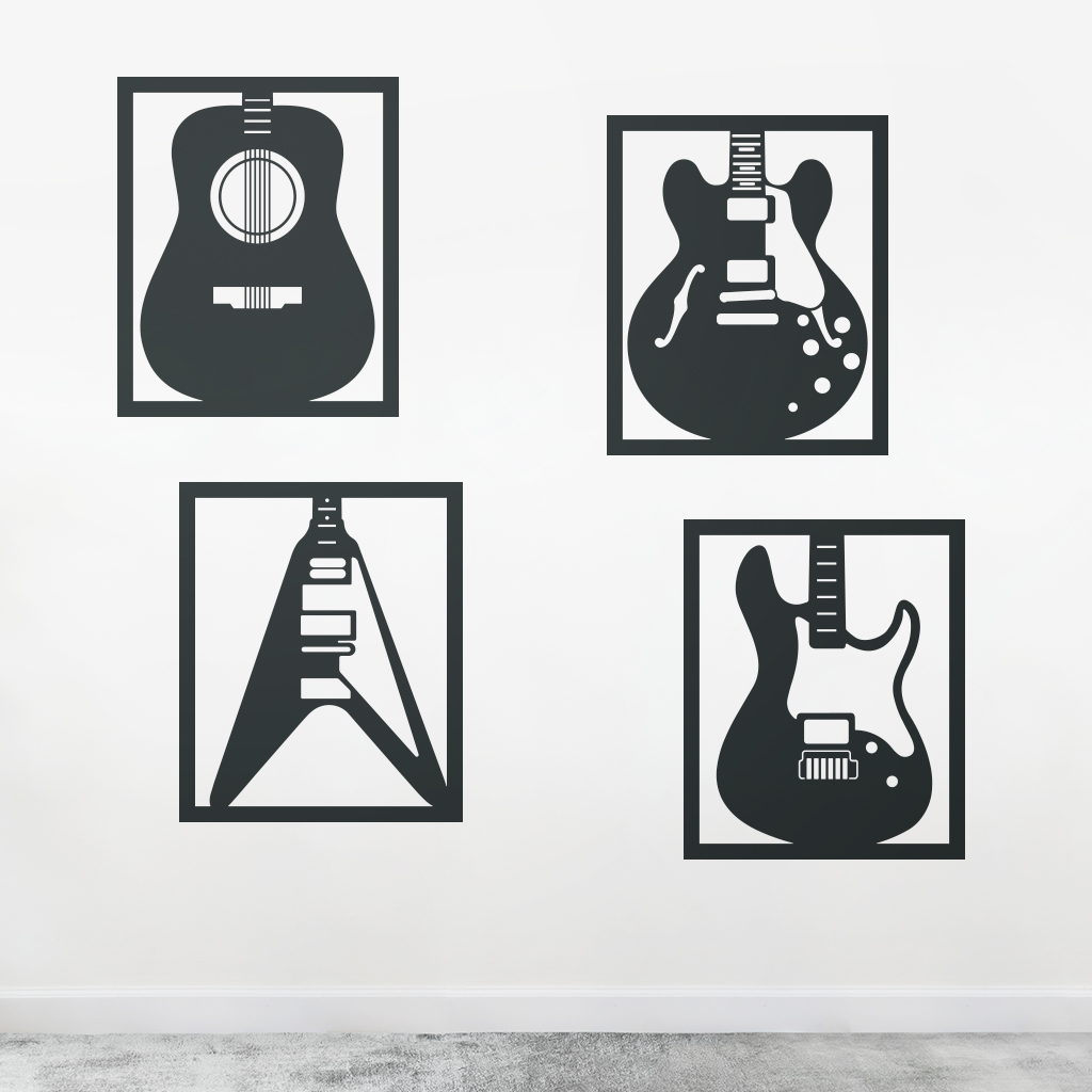 Tato originální černá samolepící dekorace na zeď Kytary sada se hodí na zeď obývacího pokoje, dětského pokojíčku, ložnice, pracovny, zkušebny kapely... Je to zkrátka ideální volba pro zpestření stěny každého milovníka hudby. Při pohledu na tuto moderní dekoraci Vám okamžitě v uších začne znít Vaše oblíbená písnička.
