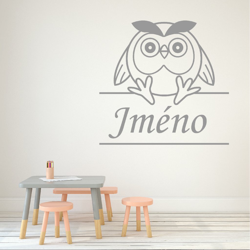 Domů Nábytek Bytové doplňky a dekorace Bytové dekorace Samolepky na zeď Samolepka Sova se jménem Barva: šedá, Velikost: 60 x 63 cm