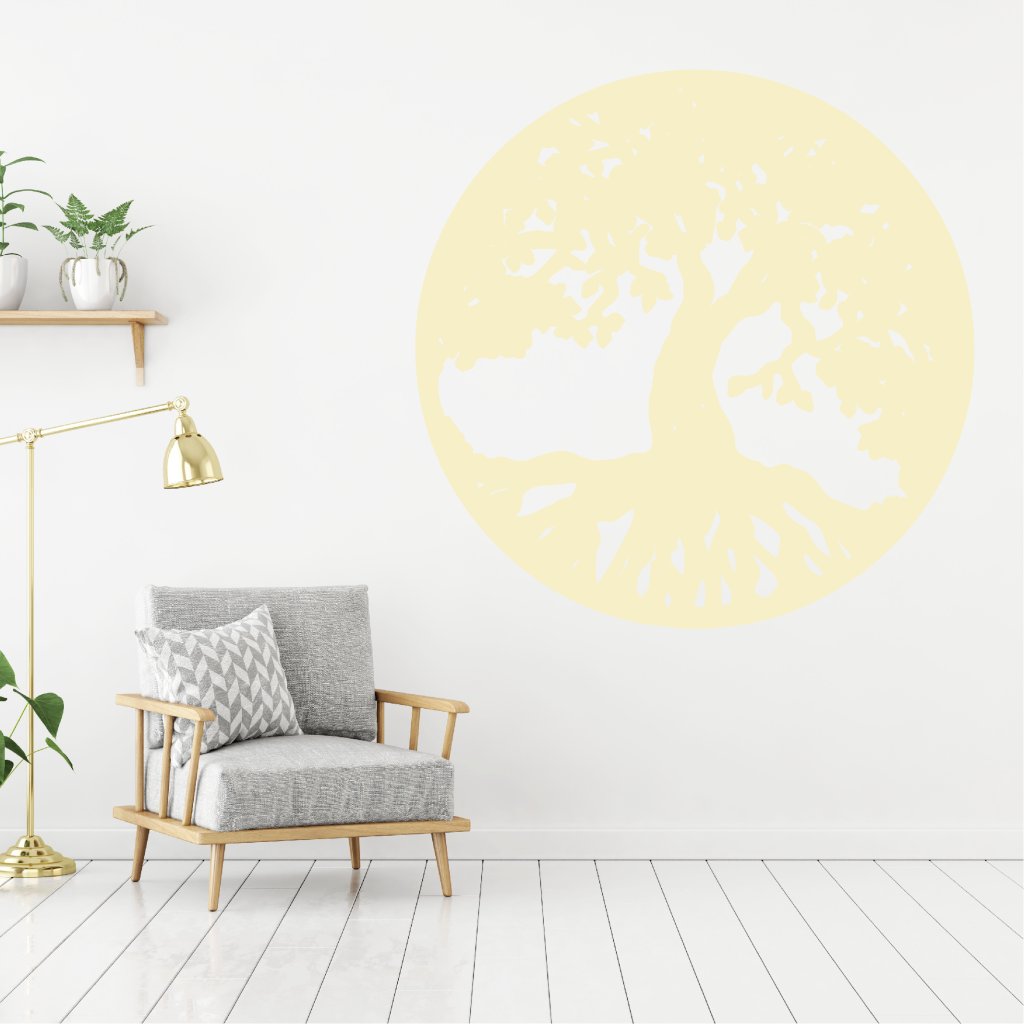 Samolepka Strom života v kruhu Barva: béžová, Velikost: 100 x 100 cm