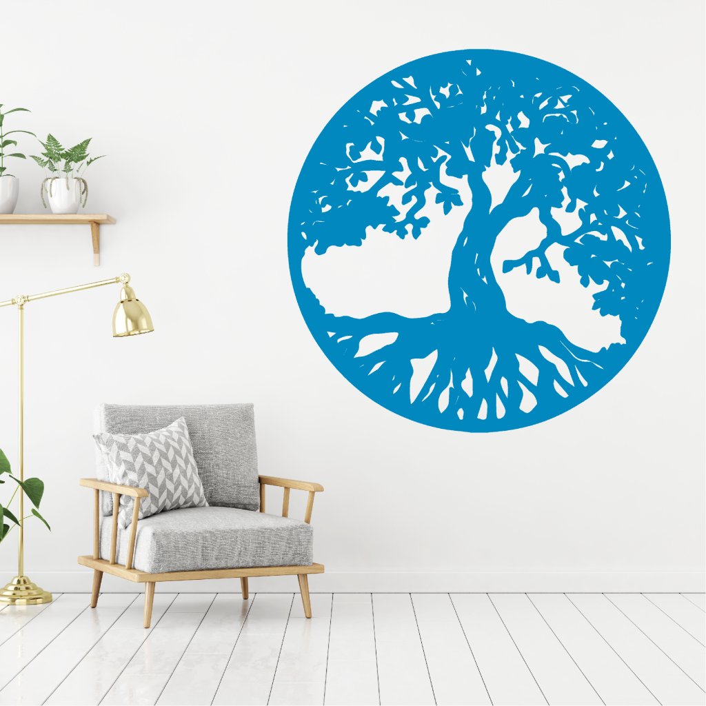 Samolepka Strom života v kruhu Barva: modrá, Velikost: 100 x 100 cm