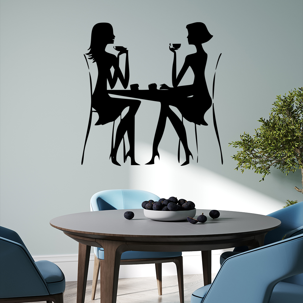 Tato originální samolepící dekorace na zeď Ženy v kavárně oživí vaši kuchyň, jídelnu nebo zútulní malou kavárničku. Dopřáváte si s kamarádkou sedánky s kávou či čajem, pak Vám tato samolepka tyto setkání připomene a na pravidelné schůzky už nezapomenete.