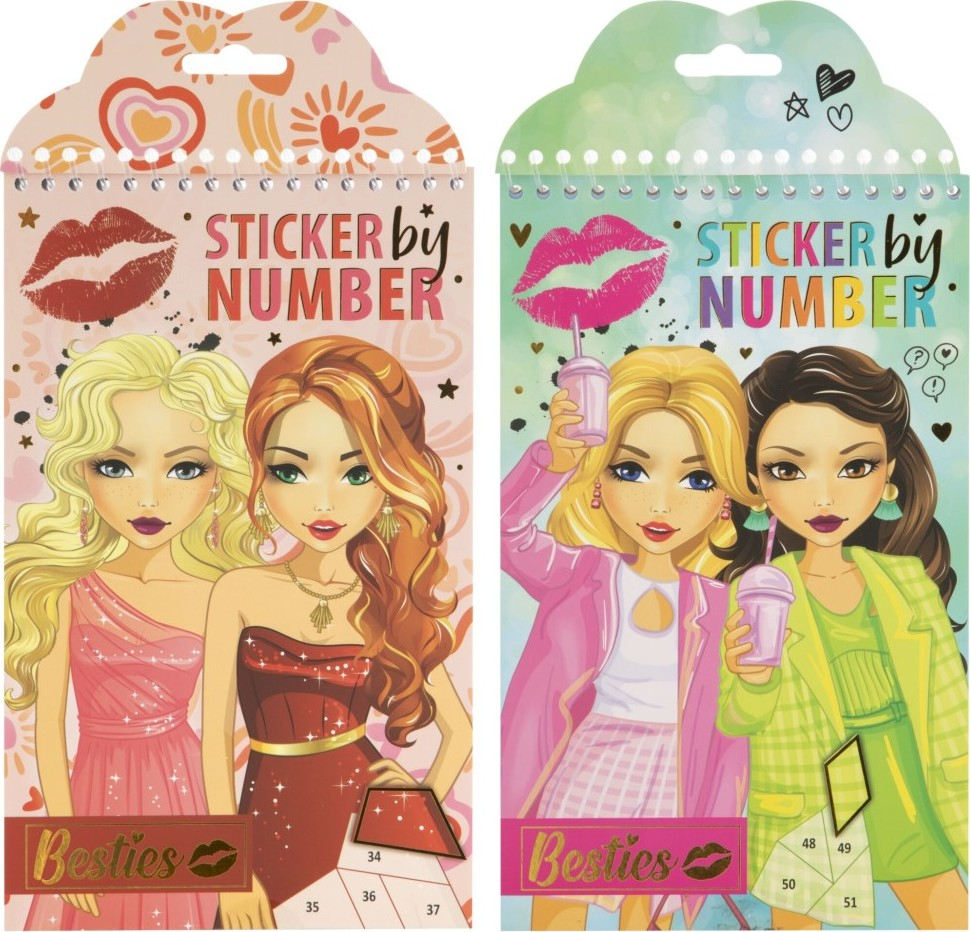 Samolepkové malování Besties obsahuje 12 obrázků + 6 archů samolepící folie a samolepek. Nalepuj dle čísel na obrázky. Dva různé druhy.