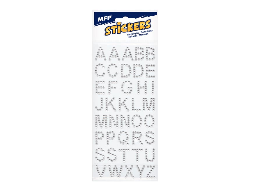Samolepky kamínky - písmena abeceda Samolepky z třpytivých kamínků ve tvaru písmen. Každé písmeno je v balení 2 x. To poskytuje dostatek možností pro vytváření kombinací a nápisů. Samolepky jsou ideální pro dekorace, scrapbooking, přáníčka, ozdobné balení dárků nebo personalizaci deníků a alb. Děti budou nadšené z možnosti ozdobit si školní pomůcky, deníčky nebo dárky pro kamarády. Samolepky pevně drží na papíře, plastu, skle i dalších hladkých površích. Snadno se aplikují – stačí je jednoduše odlepit a přilepit přesně tam, kam potřebujete.Osah balení: 40 ks samolepek písmenVelikost písmene: 1,9 cm