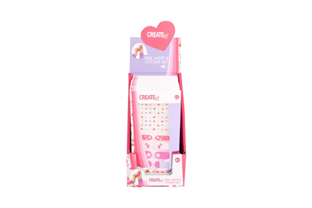 Samolepky na nehty Create it! – originální sada barevných a hravých nálepek, díky kterým snadno a rychle ozdobíte své nehty. Ideální pro dívky, které rády experimentují s nail artem. Jednoduchá aplikace, dlouhá výdrž a možnost kombinovat různé motivy. Perfektní doplněk pro párty, školu i každodenní nošení. Dále obsahuje 4 pilníky různé hrubosti.