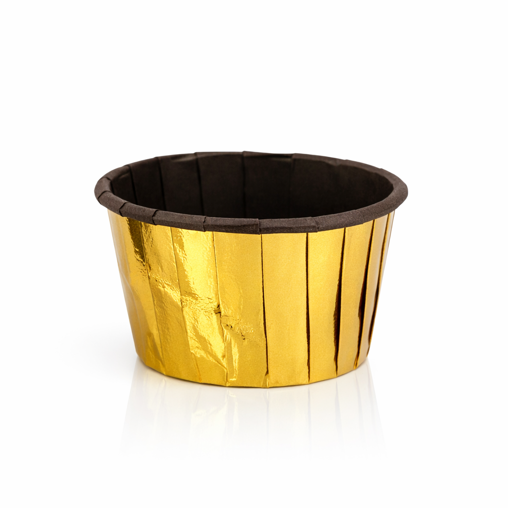 Samonosné košíčky zlato-hnědé (50 ks) jsou praktické a elegantní formičky na pečení muffinů, cupcaků i slaných dobrot. Díky pevné konstrukci drží tvar samy o sobě, takže je můžete používat i bez plechu na muffiny – ideální pro domácí pečení i profesionální cukrářské provozy. Košíčky jsou vyrobené z odolného teplu vzdorného hliníku, který zajišťuje rovnoměrné propečení těsta a stabilitu při manipulaci. Hotové muffiny se snadno vyjímají a košíčky zároveň vypadají luxusně i při přímém servírování. Výhody: samonosné – drží tvar i bez plechu vhodné na muffiny, cupcakes i slané pečení tepluodolný hliník pro rovnoměrné propečení elegantní zlato-hnědý vzhled pro prezentaci ideální pro domácí i profesionální použití Balení: 50 ks Rozměr: 5 × 3,9 cm