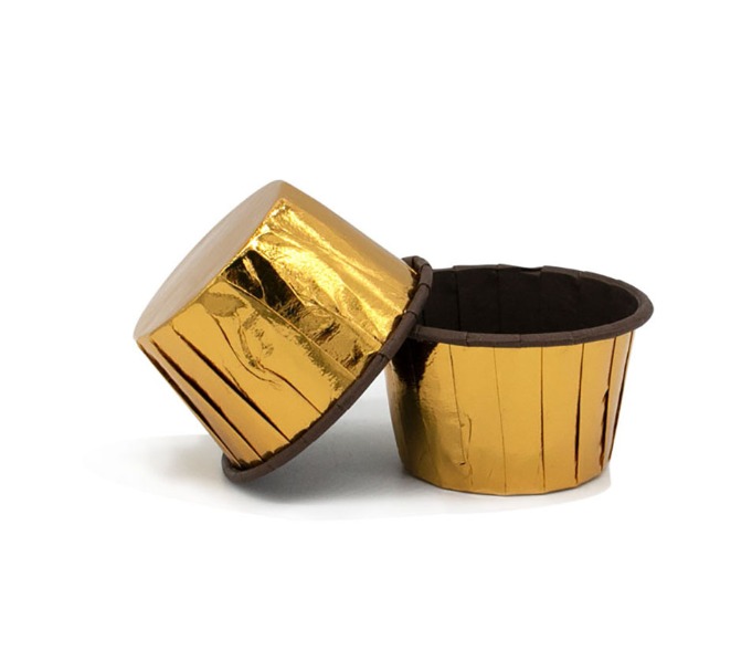 Samonosné košíčky zlato-hnědé balení 50ks Samonosné košíčky na muffiny jsou praktické formičky, které drží tvar i bez použití plechu na muffiny. Jsou ideální na pečení muffinů, cupcaků či jiných sladkých i slaných dobrot. Vyrobené z odolného, teplu vzdorného hliníku zajišťují rovnoměrné propečení těsta a snadné vyjmutí hotového výrobku. Díky elegantnímu vzhledu se hodí i pro přímou prezentaci a servírování. Rozměr: 5 x 3,9cm