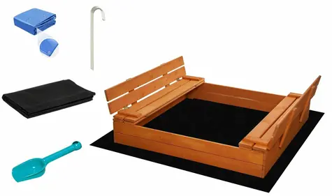 SAND TROPIC Dřevěné pískoviště s lavičkami a příslušenstvím 120x120cm (impregnované)