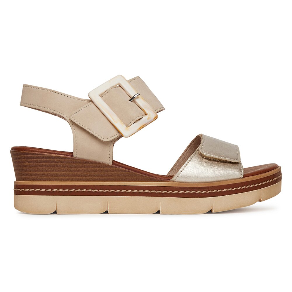 Sandály BÉŽOVÁ Přírodní kůže (useň) - Lícová REMONTE D2L53-60 BEŻOWY Remonte Dámské/Obuv/Sandály