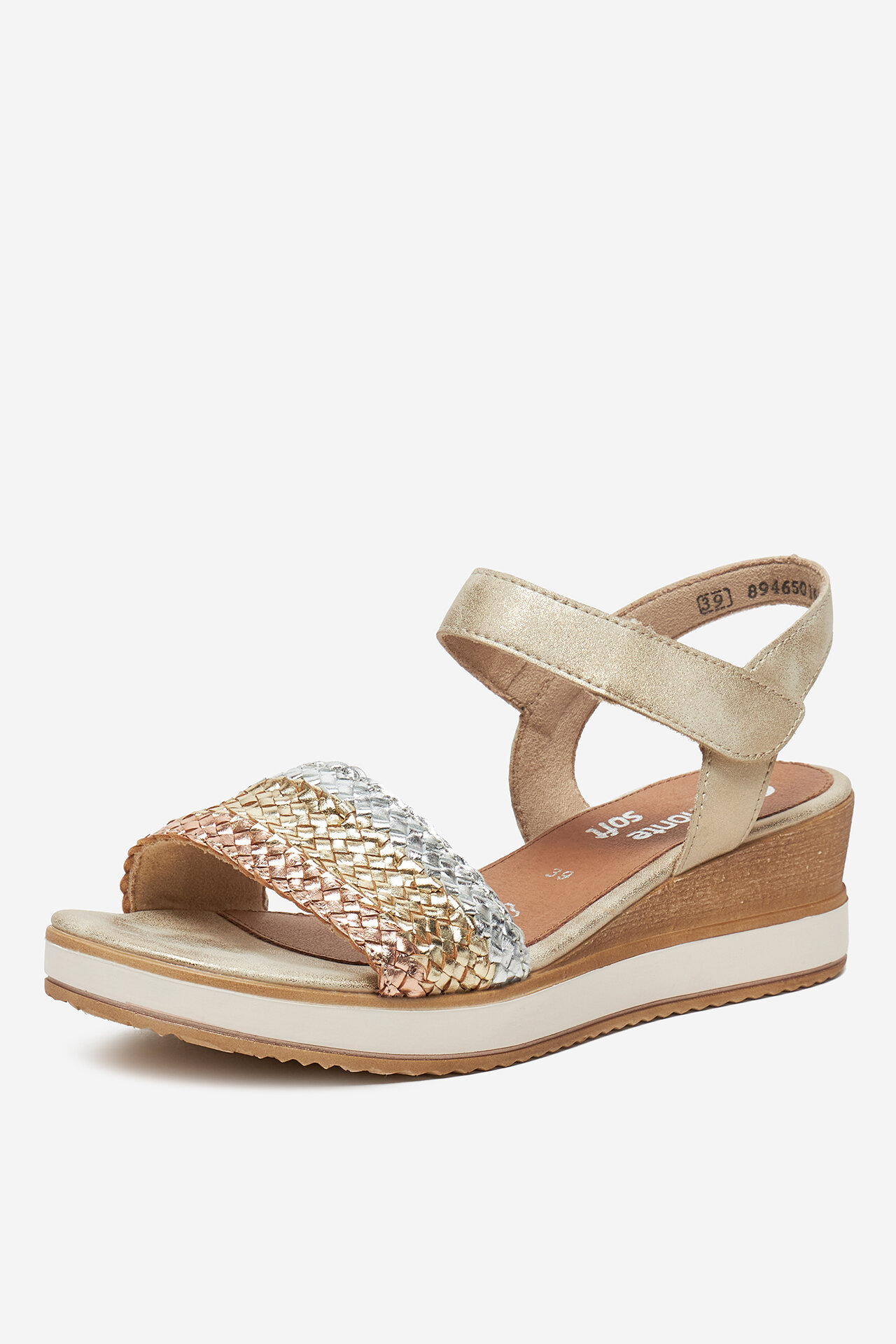 Sandály ZLATÁ Syntetický materiál,Přírodní kůže (useň)/-Přírodní kůže (useň) REMONTE D6465-90 ZŁOTY Remonte Dámské/Obuv/Sandály