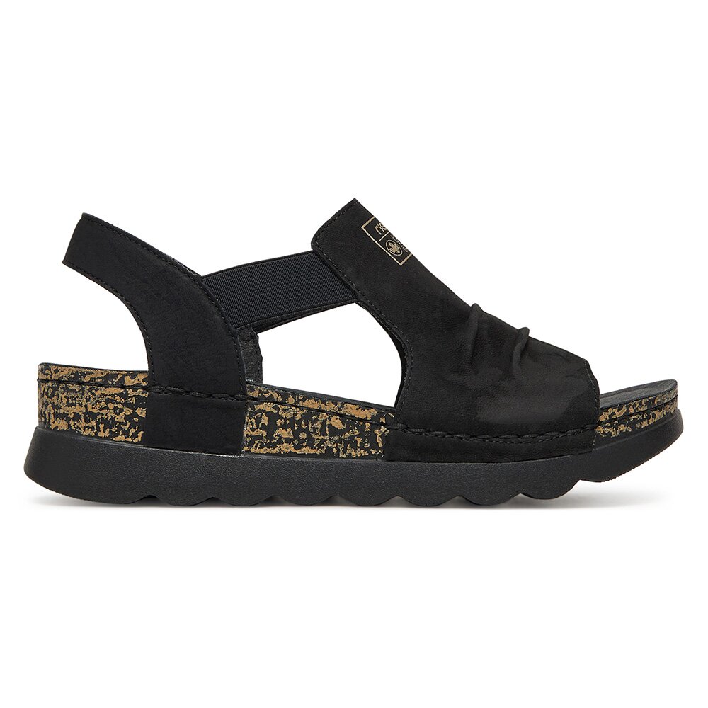 Sandály ČERNÁ Syntetická tkanina,Přírodní kůže (useň)/-Přírodní kůže (useň) RIEKER 64463-01 CZARNY Rieker Dámské/Obuv/Sandály