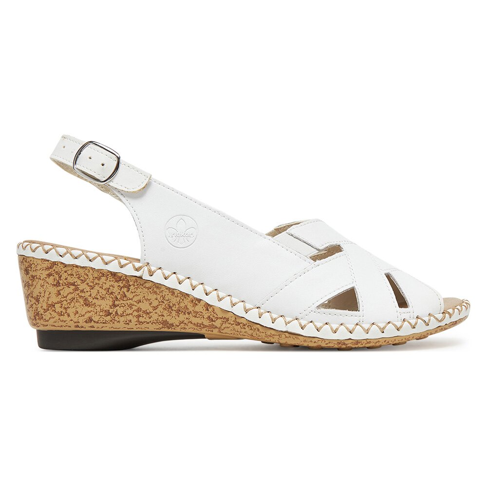 Sandály BÍLÁ Přírodní kůže pokrytá syntetickým materiálem RIEKER 66189-80 Biały Rieker Dámské/Obuv/Sandály