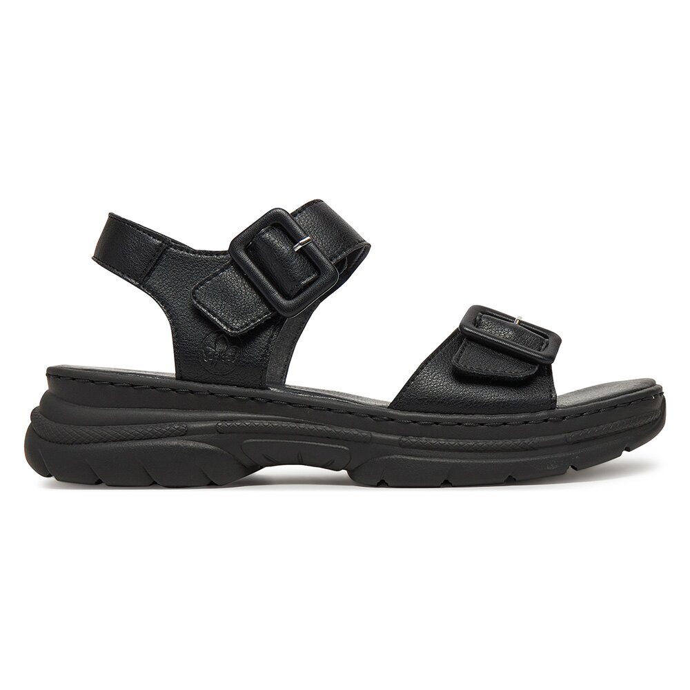 Sandály ČERNÁ Přírodní kůže pokrytá syntetickým materiálem RIEKER 66680-00 CZARNY Rieker Dámské/Obuv/Sandály