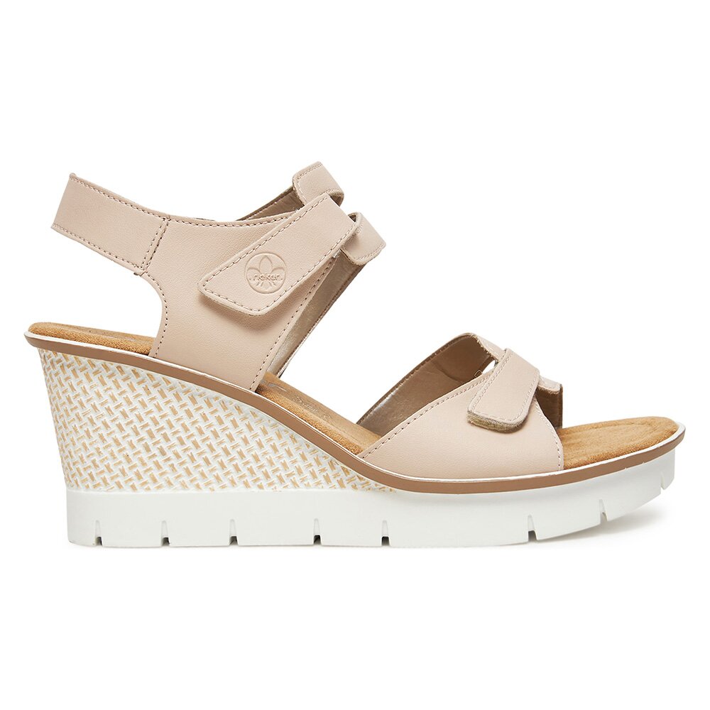 Sandály SVĚTLE BÉŽOVÁ Přírodní kůže pokrytá syntetickým materiálem RIEKER 68556-31 Beżowy Jasny Rieker Dámské/Obuv/Sandály