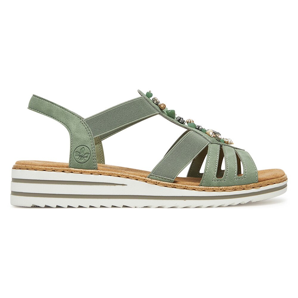 Sandály JASNĚ ZELENÁ Syntetický materiál RIEKER V0649-52 Zielony Jasny Rieker Dámské/Obuv/Sandály
