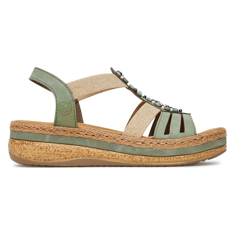 Sandály JASNĚ ZELENÁ Látkový materiál,Syntetický materiál RIEKER V0920-52 Zielony Jasny Rieker Dámské/Obuv/Sandály